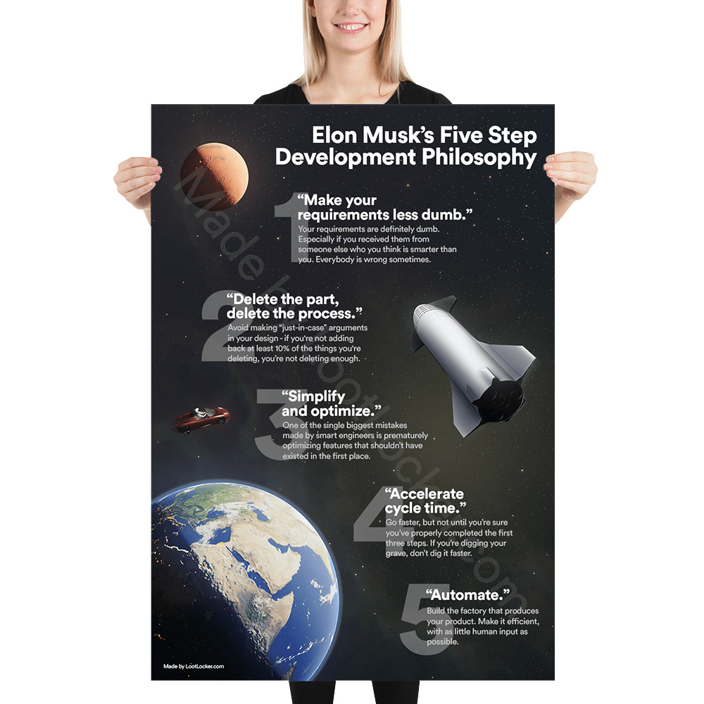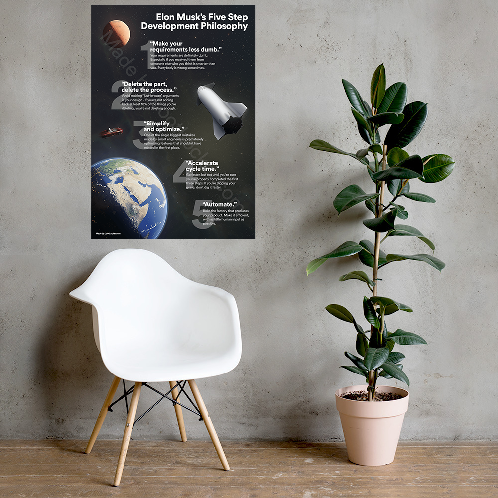 Elon Musk's Five Step Design Philosophy Poster